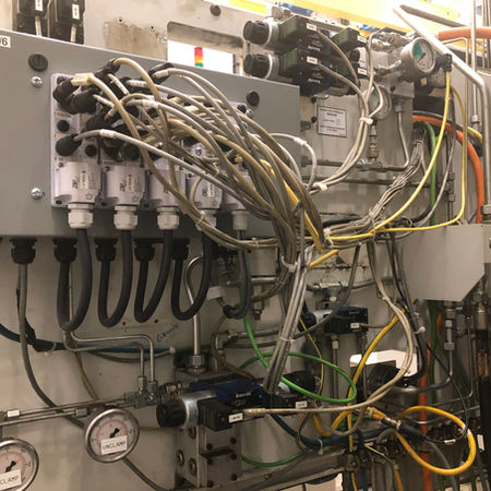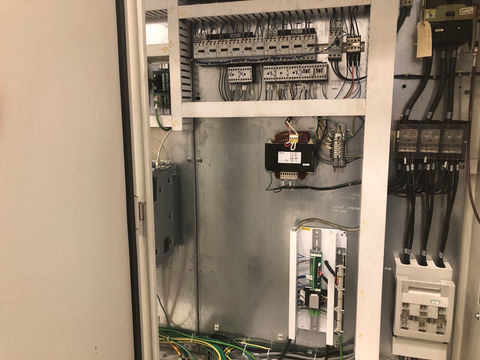 To accommodate the eventual addition of a B-axis, the line module powering the drives was increased from 80kW to 120kW. To quickly integrate with the existing electrical cabinet, several smaller panels were built off-site and then mounted onto the existing panel. The retrofit required replacing the old IO modules that ran on a Siemens ET200M PLC with new Siemens PP72/48 IO boards. To streamline this integration MCI designed and built compact IO modules that were able to be mounted directly onto the machine. This allowed for all IO to simply be plugged into these modules greatly simplifying the process and saving hours of rewiring cost. Reusing the customer’s encoder and Heidenhain LB382C scale feedback required Siemens SMC-30 modules to convert the TTL signals to the Drive-Cliq interface. The automatic tool changer was setup as a PLC axis that is run asynchronously to the other axes. The existing Renishaw RMP60 part probe was integrated into the 828D control, allowing the customer to run automatic probe cycles. A wireless tool setter was also added and integrated with custom programs. The M codes to run these programs were chosen to mirror those that the customer was familiar with on their other machines. To meet the customer’s need for simple manual operation, the machine was set up with the ability to enter “Manual Mill” mode. This mode allows for the simple selection of axis, direction, and feed rate using buttons on the operator panel, with spindle speed and direction set in the control. The process can then be operated using the “Cycle Start/Stop” and “Spindle Start/Stop” buttons, as well as speed control using the feed/spindle override dials.